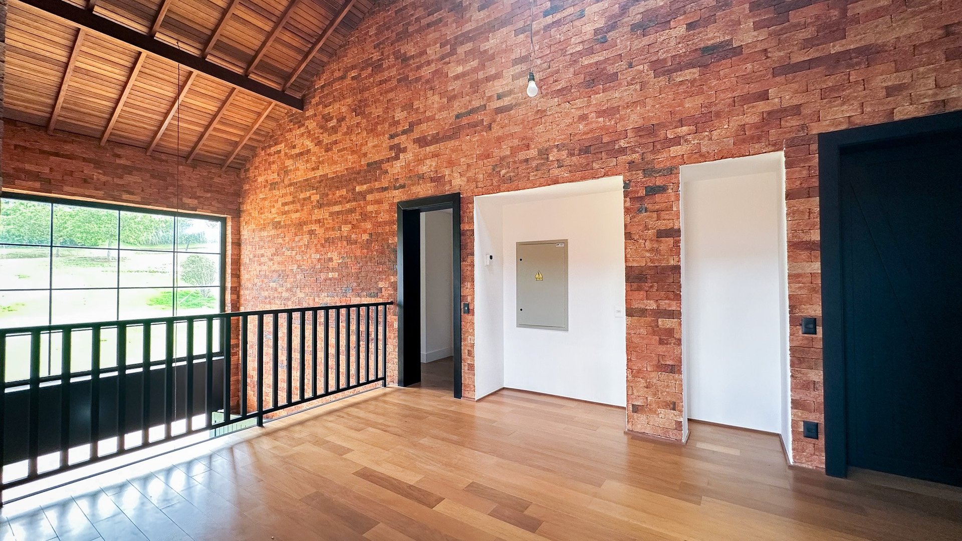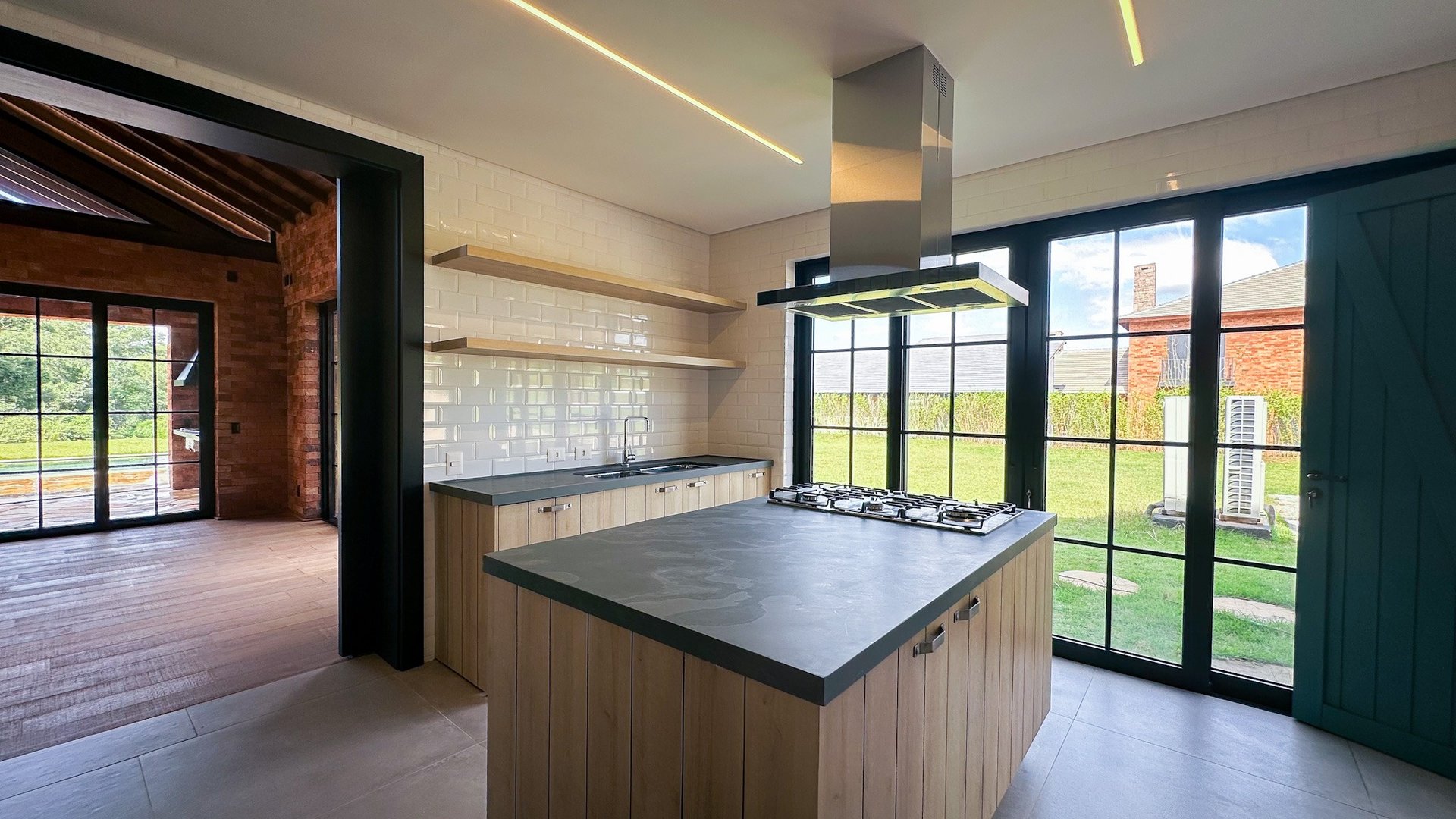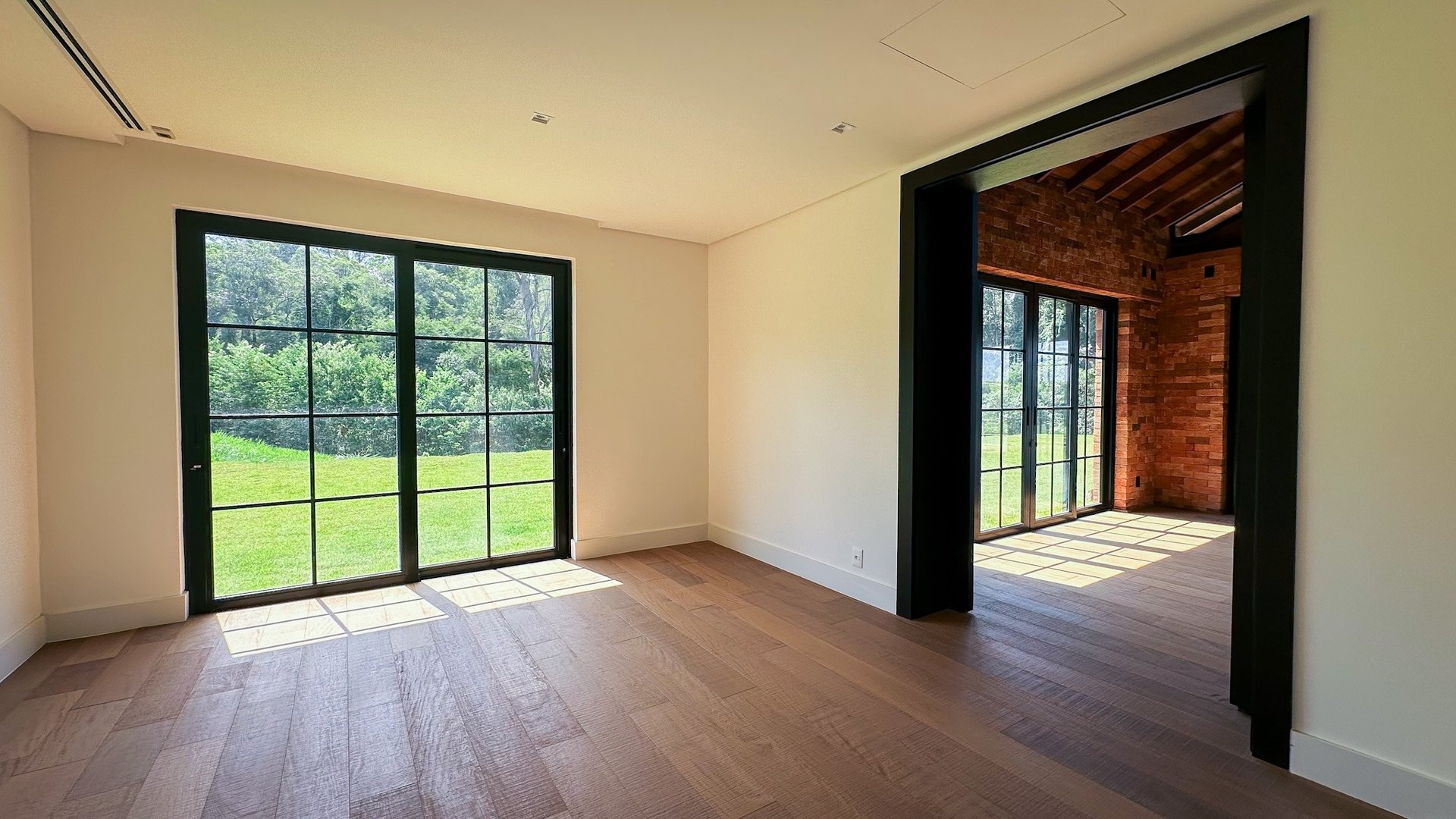 As janelas amplas inundam os espaços com luz natural, proporcionando uma vista de tirar o fôlego. A sala de TV, sala dois ambientes com lareira e cozinha completa com ilha e despensa integram-se de maneira harmoniosa à área gourmet, que conta com lareira, churrasqueira e uma vista encantadora para o horizonte e campo de golfe.