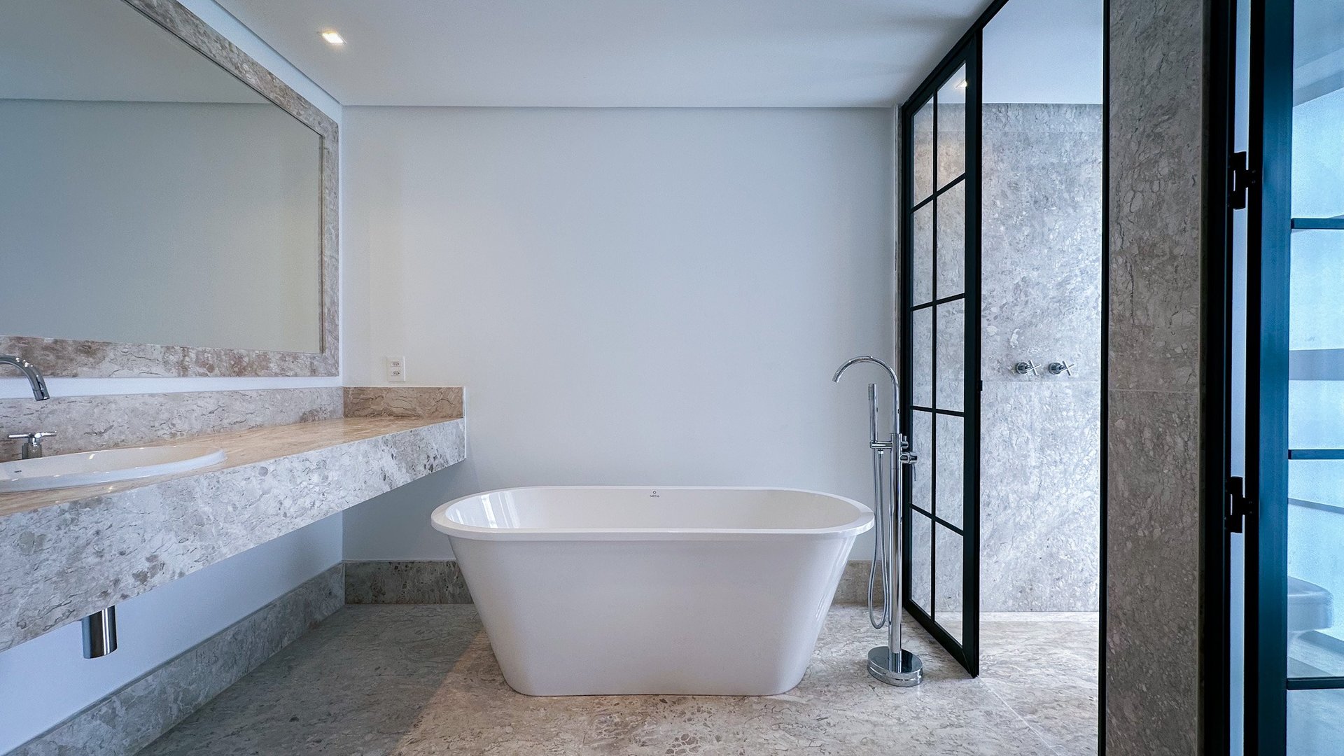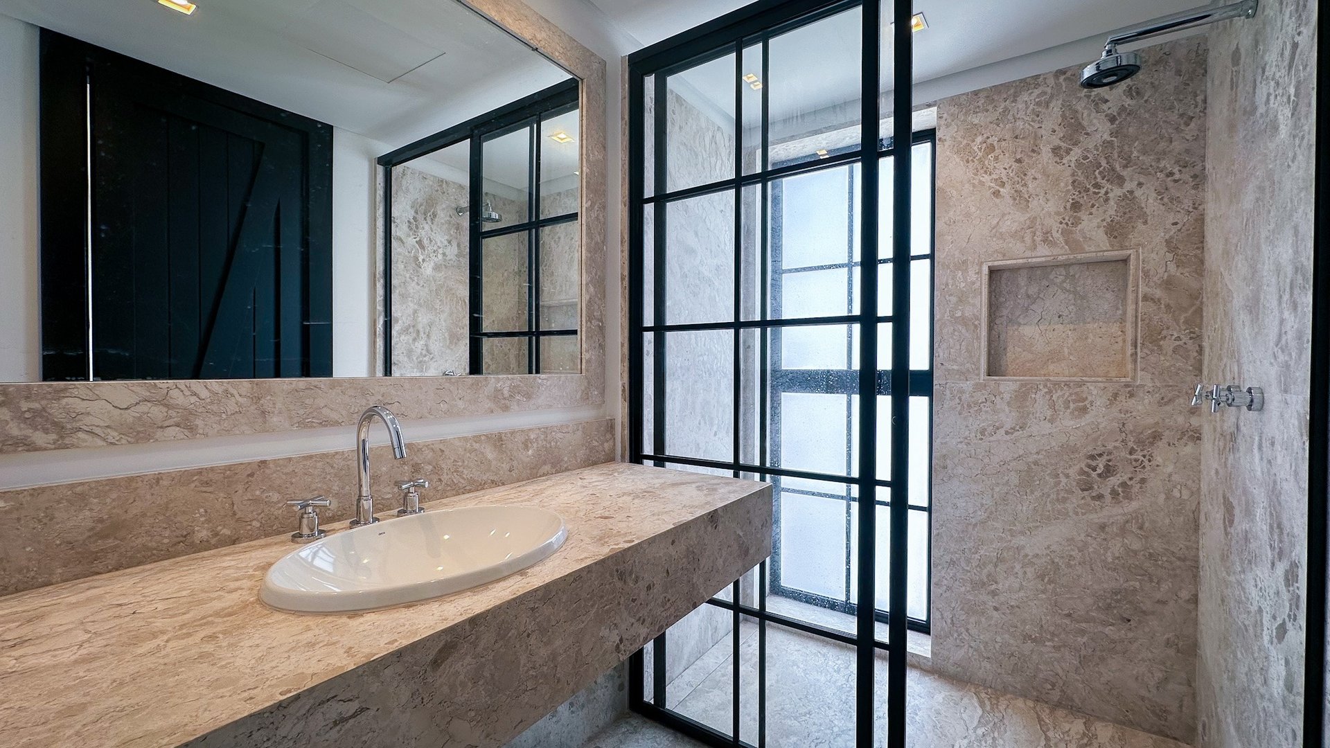 No piso inferior, duas suítes reversíveis oferecem versatilidade, enquanto, ao subir as escadas, um hall conduz a outras quatro suítes, todas com varanda e vistas panorâmicas. A suíte master, adornada com closet, quarto com lareira e uma banheira, proporciona momentos relaxantes.