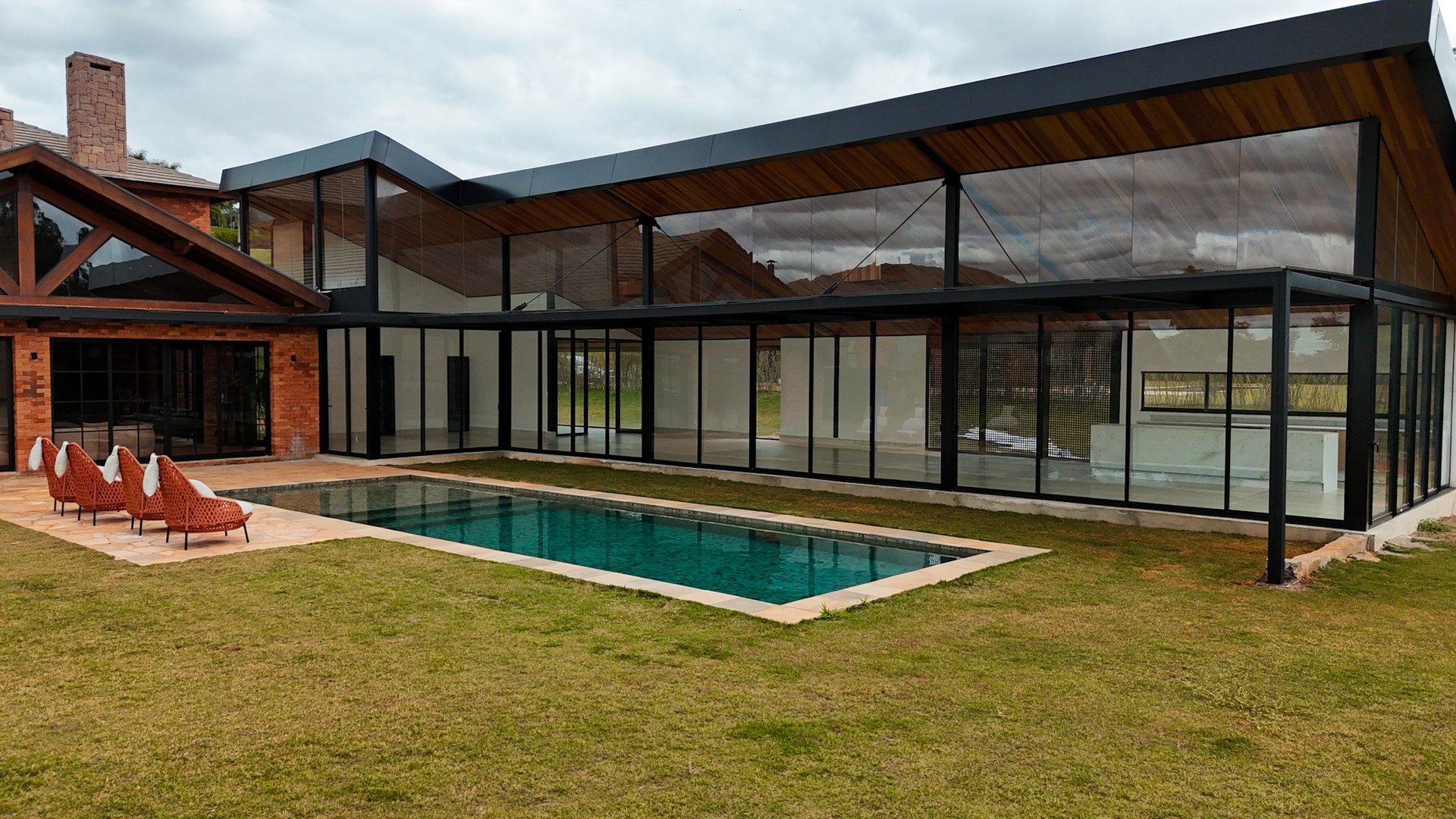 As janelas amplas inundam os espaços com luz natural, proporcionando uma vista de tirar o fôlego. A sala de TV, sala dois ambientes com lareira e cozinha completa com ilha e despensa integram-se de maneira harmoniosa à área gourmet, que conta com lareira, churrasqueira e uma vista encantadora para o horizonte e campo de golfe.