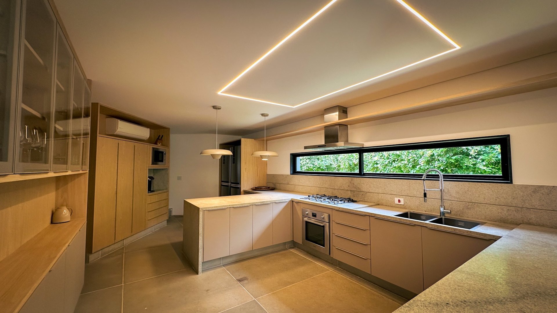 Implantada em um terreno de 2.830 m², com 810 m² de construção, a residência se destaca pela elegância de suas linhas e pela fluidez dos espaços.