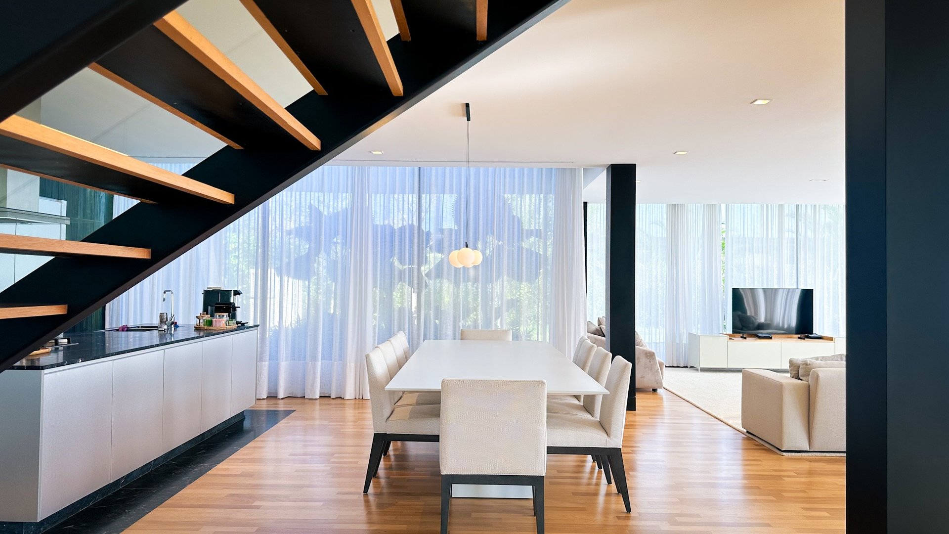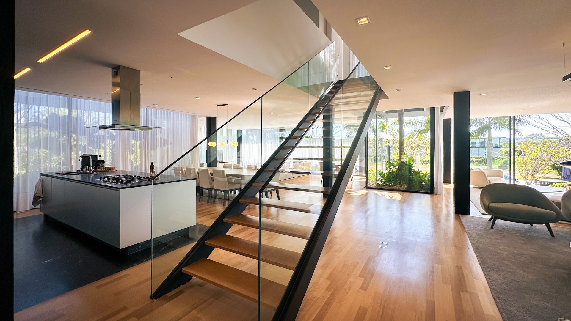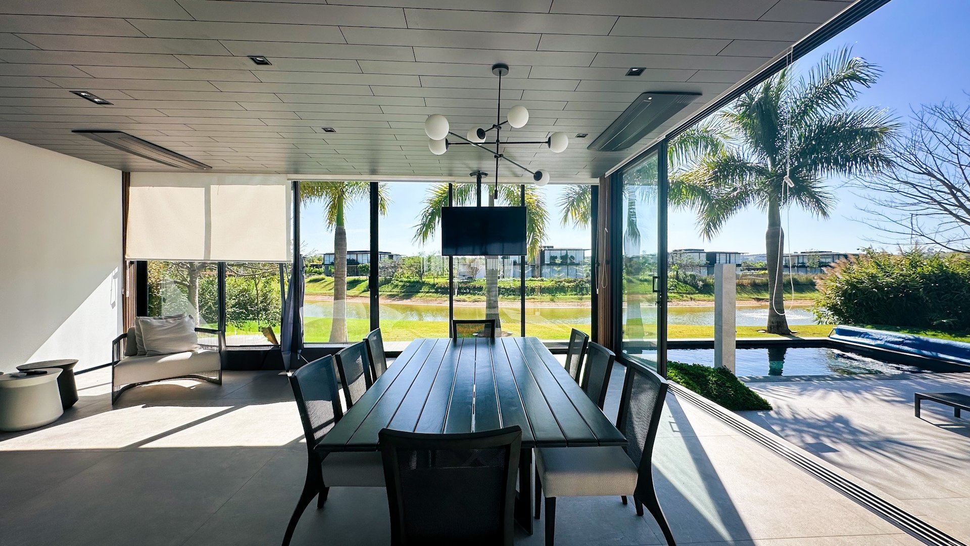 A cozinha totalmente equipada possui armários planejados, proporcionando um ambiente funcional e elegante para preparar refeições. A área gourmet é um destaque à parte, ideal para receber amigos e aproveitar momentos especiais ao ar livre, com uma churrasqueira para refeições ao ar livre. No exterior, há uma varanda aconchegante para apreciar a vista do lago, um espaçoso quintal para atividades ao ar livre e um belo jardim de inverno que acrescenta serenidade e beleza natural ao ambiente.
