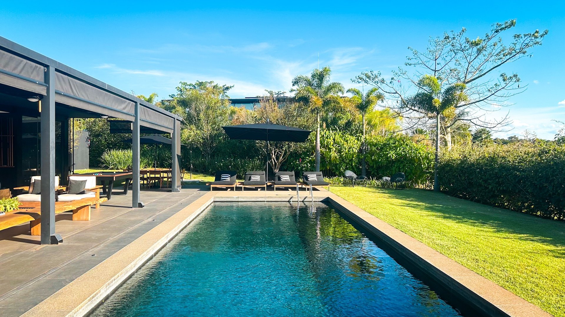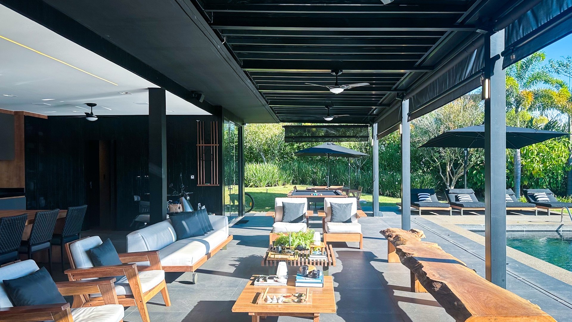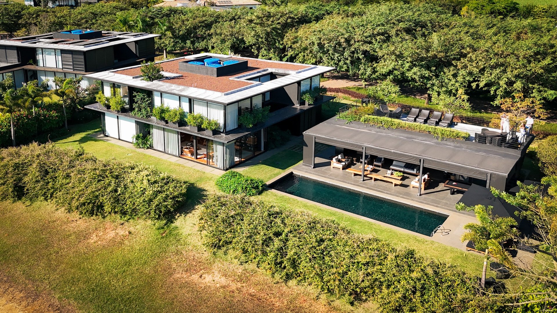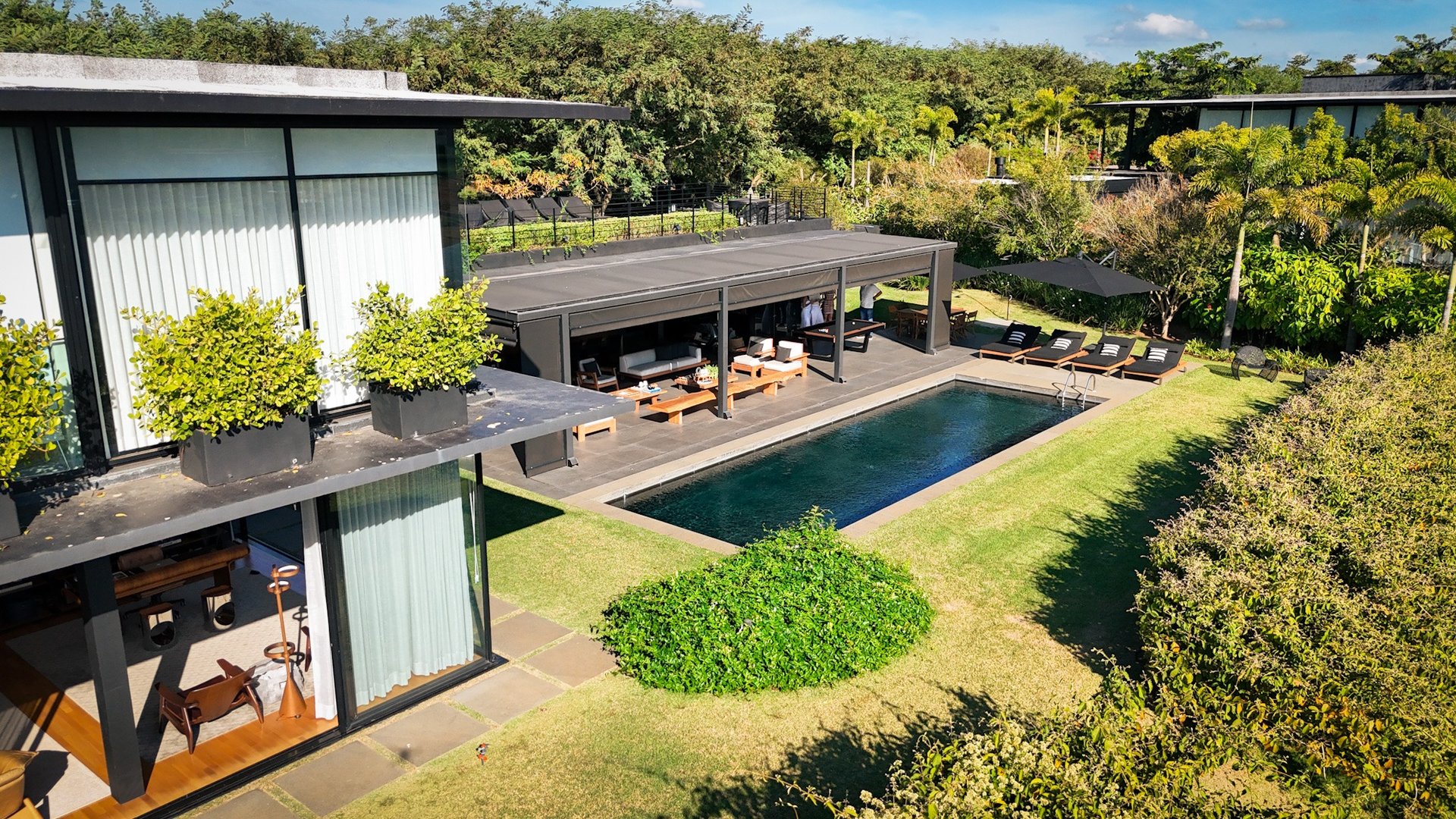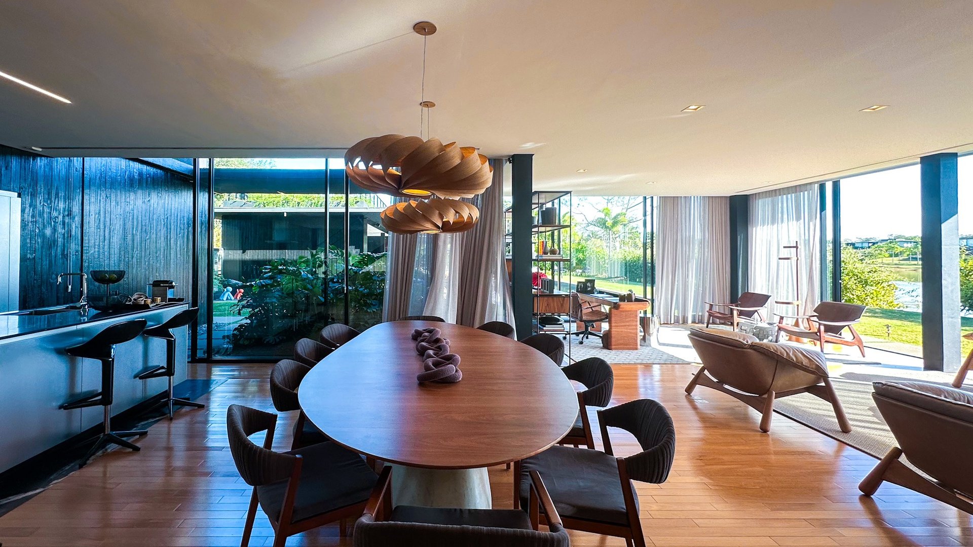 Localizada em rua sem saída, a poucos passos da academia e das quadras, esta residência reúne o melhor da arquitetura contemporânea, design e integração com o estilo de vida da Fazenda.