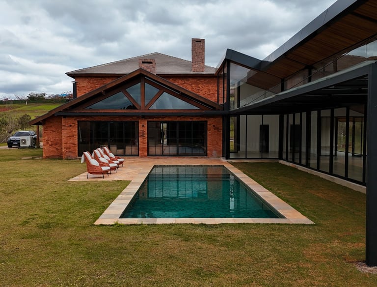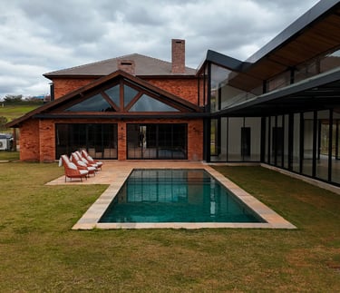 A Barn House, situada na deslumbrante Boa Vista, destaca-se em meio a paisagem por seu design rústico e localização privilegiada no condomínio.