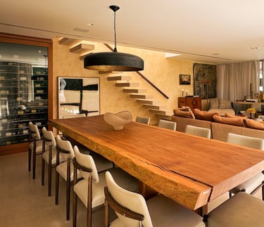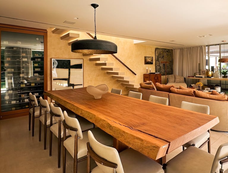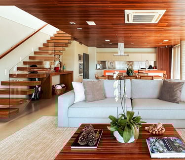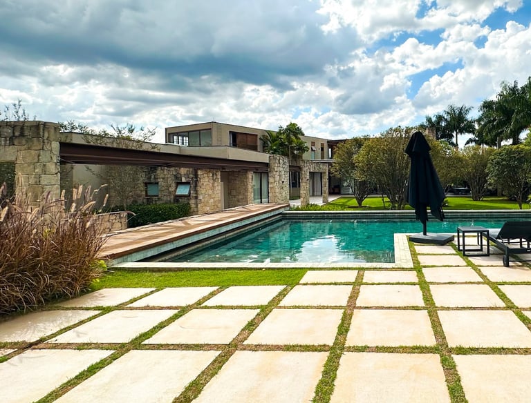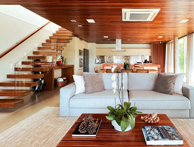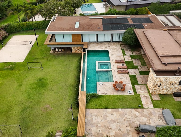 Com 650 m² de área construída em um terreno de 2.396 m², a Casa Wooden é uma residência térrea de alto padrão que combina arquitetura contemporânea.