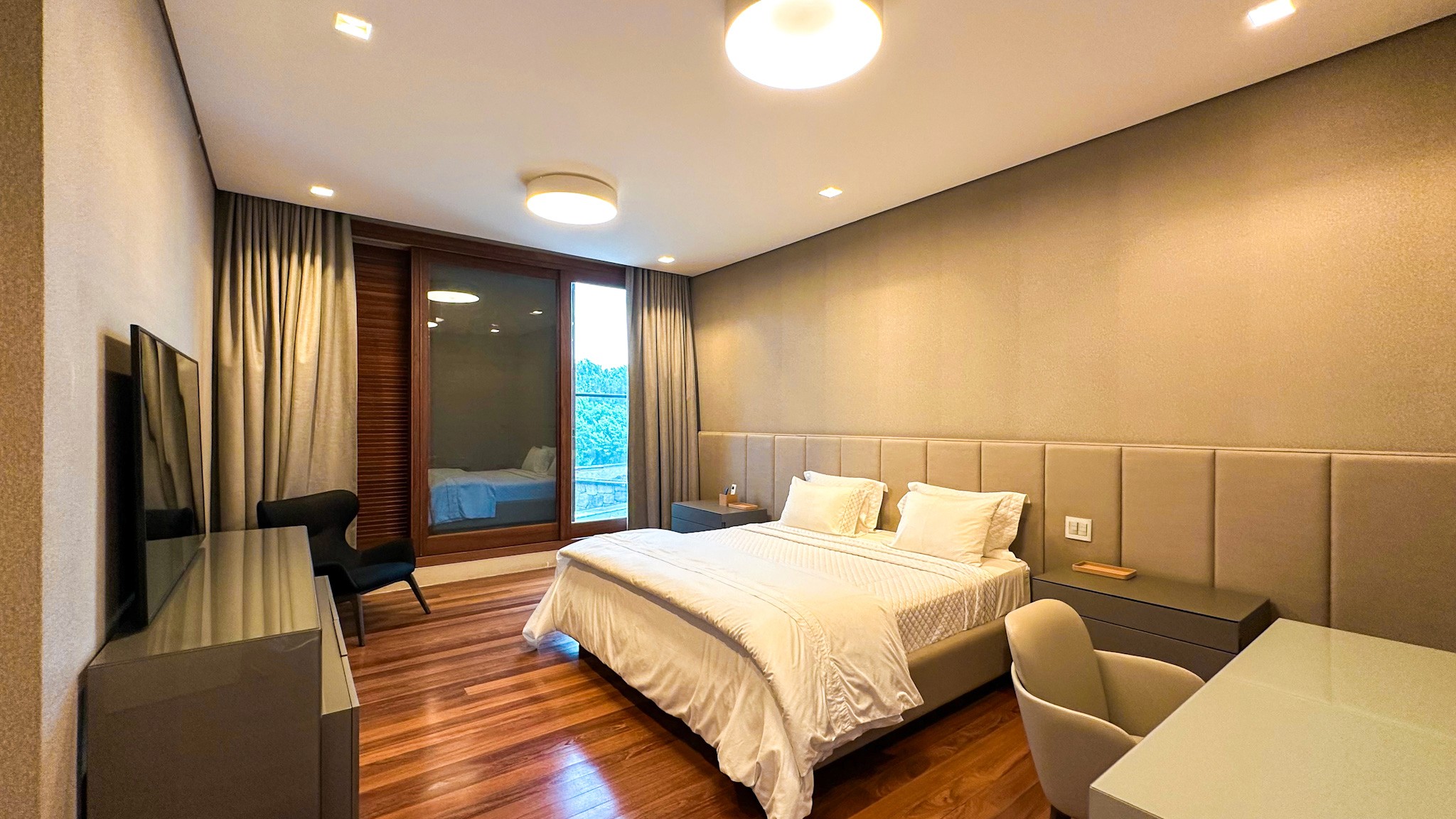 Os ambientes foram cuidadosamente pensados para proporcionar uma experiência única, com acabamentos de alto padrão, materiais nobres e uma atmosfera de extremo refinamento. A área íntima conta com seis suítes amplas e sofisticadas, oferecendo privacidade e conforto absoluto.