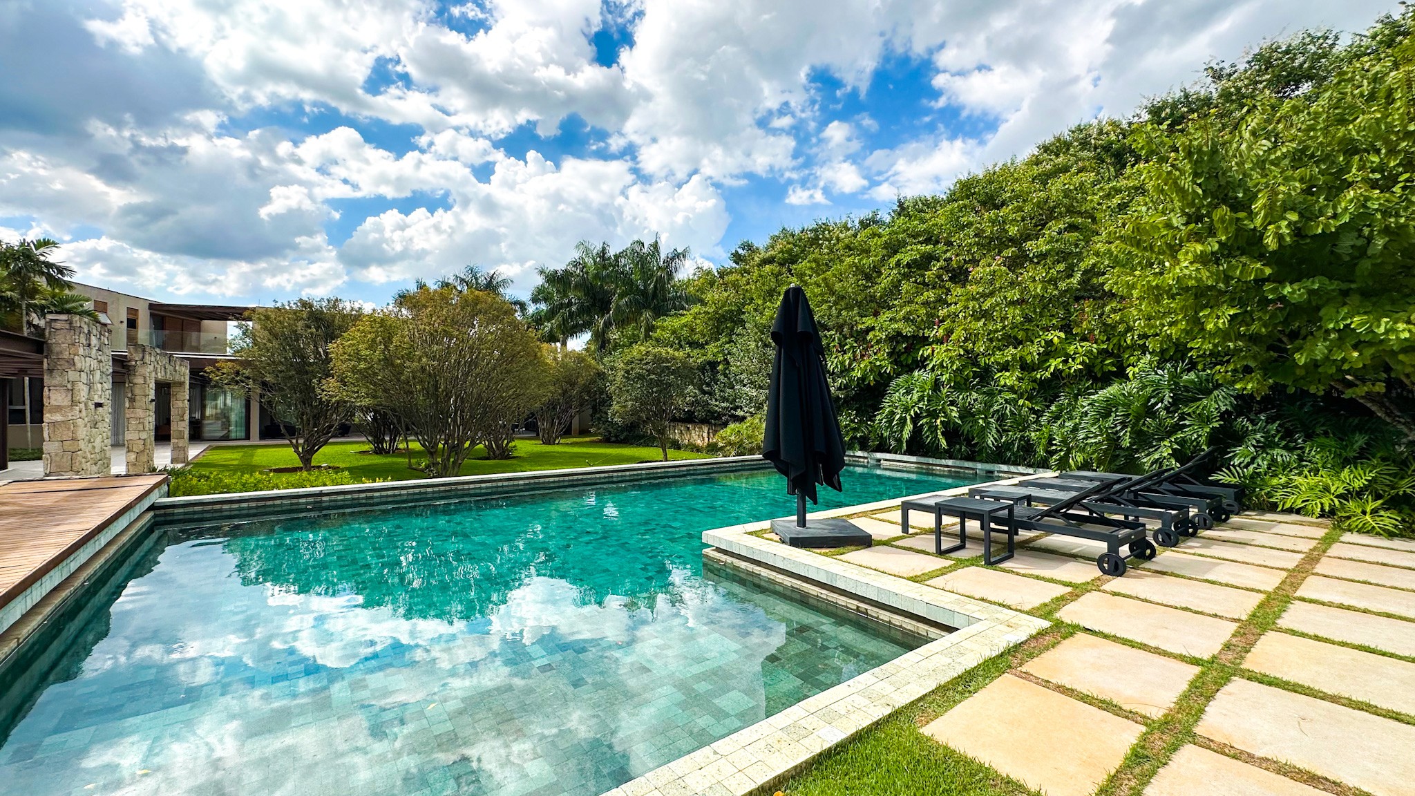 Residência de alto padrão na Fazenda Boa Vista, com 1.350 m² de área construída em um terreno de 4.700 m². Projetada por Olegário de Sá e com interiores assinados por Chris Hamoui, a casa conta com 6 suítes e ambientes amplos que combinam sofisticação e conforto. A área externa destaca-se pela piscina e paisagismo exuberante, criando um refúgio exclusivo em meio à natureza, ideal para quem busca privacidade, design e qualidade de vida.