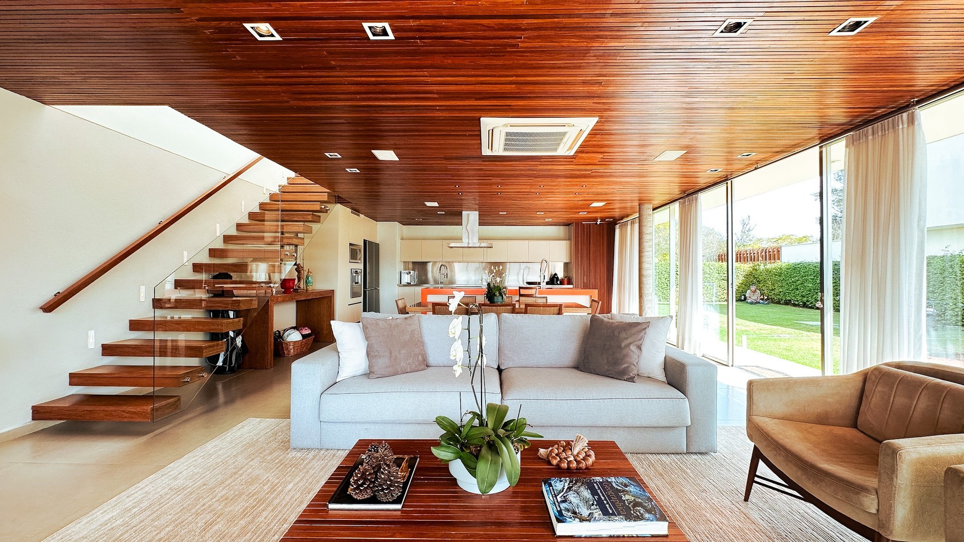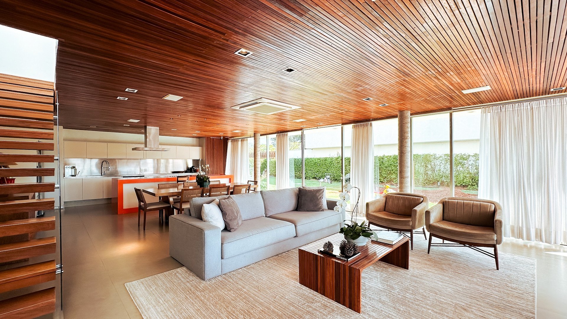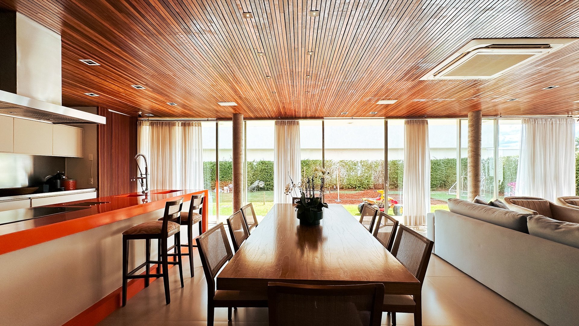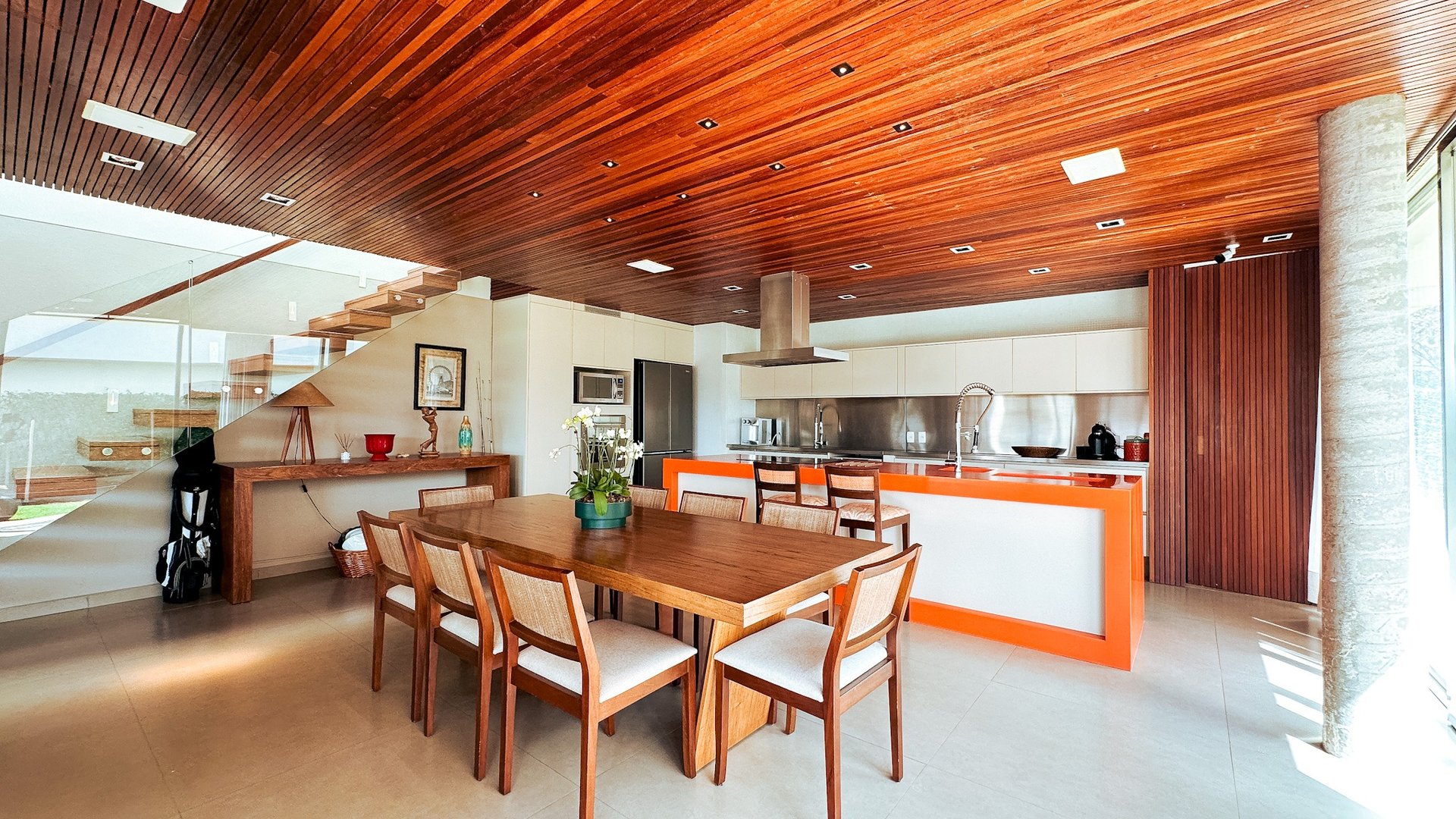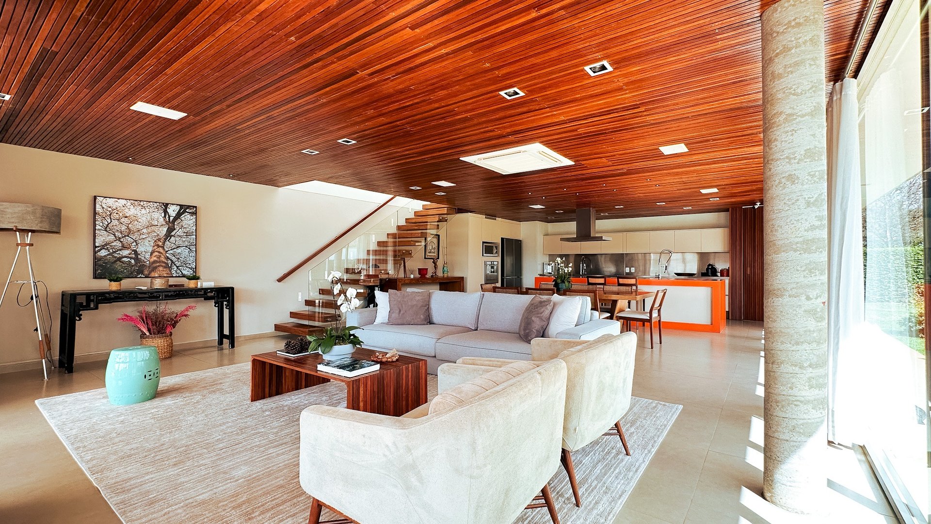 Com arquitetura elegante e integração perfeita com a natureza, a residência combina amplos ambientes envidraçados, que valorizam a iluminação natural, com espaços aconchegantes para desfrutar momentos especiais em família.