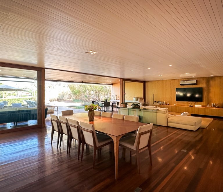Com uma ampla área de terreno, a propriedade oferece espaço e privacidade. Todos os ambientes da casa são climatizados com ar condicionado, garantindo conforto durante todas as estações do ano.